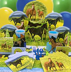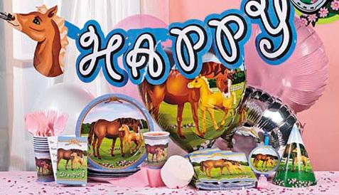 It comes with 16 plates & cups, 32 napkins & cutlery sets, one Pony Party table cover.