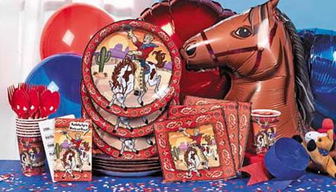 The Basic Cowboy Party Package includes plates, naplins cutlery & ups for 16.