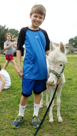 This little man had the horses at his party, then came to his cousin's Petting Zoo Party. He's 14 months old and he spent the whole time leading Tina around.