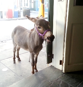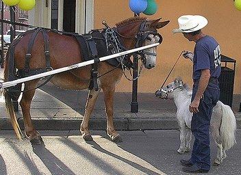 Jim & Rowdy chatting with a mule on Bourbon Street