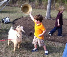 Gabbie and her little buddy play while Dixie shows off her new hat.