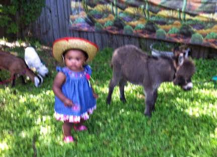 This little girl is having a hard time deciding which of our newest additions to play with first! She finally chose Ajax, the baby donkey, but the goat & the lamb got their petting too.